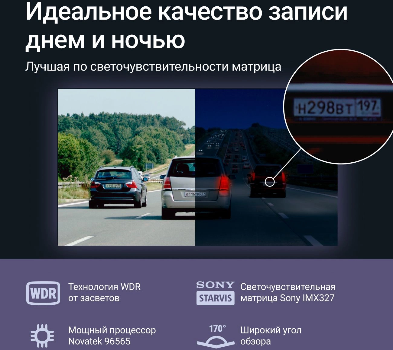 | Особенности | Высокая детализация записи и днем, и ночью с углом обзора 170 градусов. Лучшая по светочувствительности матрица Sony 327. Задняя Full HD камера с ассистентом парковки. Wi-Fi и фирменное приложение. 100% сохранение записи при ударе, устойчивость к любому температурному режиму (суперконденсатор) | |