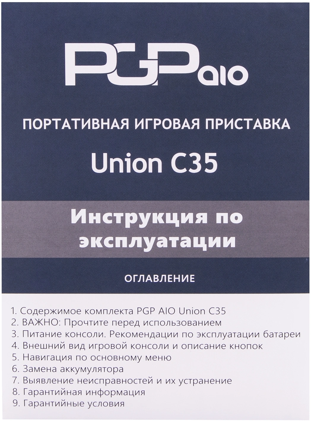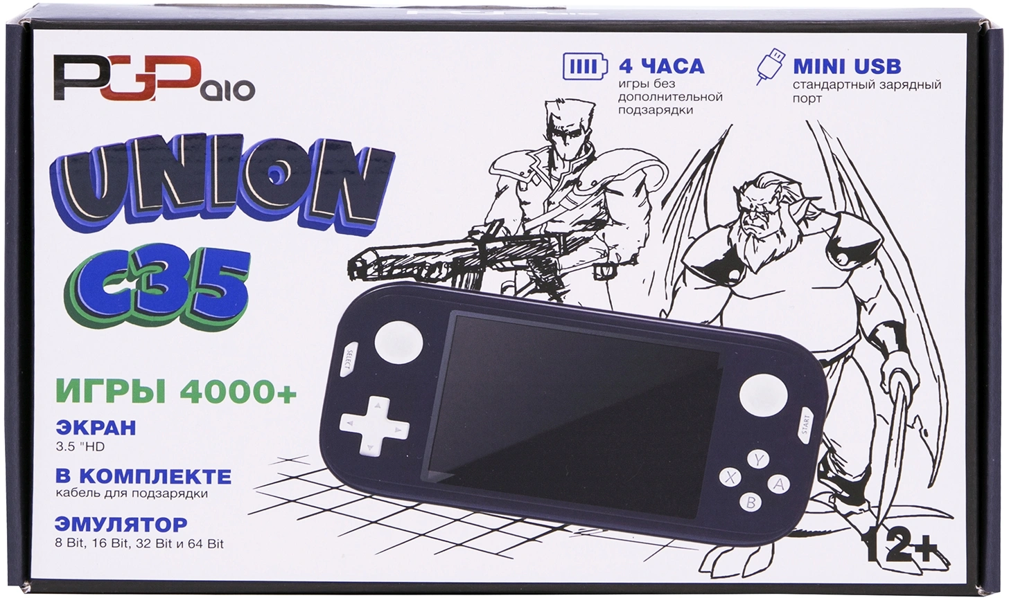 | Комплектация | Игровая приставка Union C35, Кабель Mini USB, Перезаряжаемая аккумуляторная батарея (1000 Mah), Инструкция по эксплуатации, TF-карта емкостью 8 GB | |
