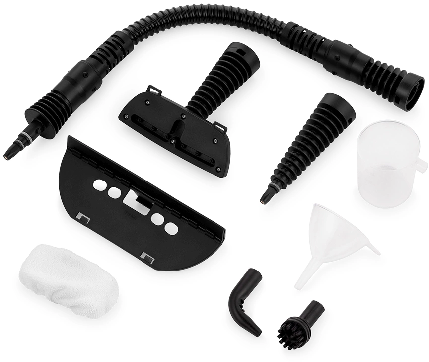 | Насадки в комплекте | струйная насадка, угловая насадка, круглая нейлоновая щетка, паровой шланг, насадка для отпаривания, тряпка для отпаривания, насадка с резиновым скребком | |