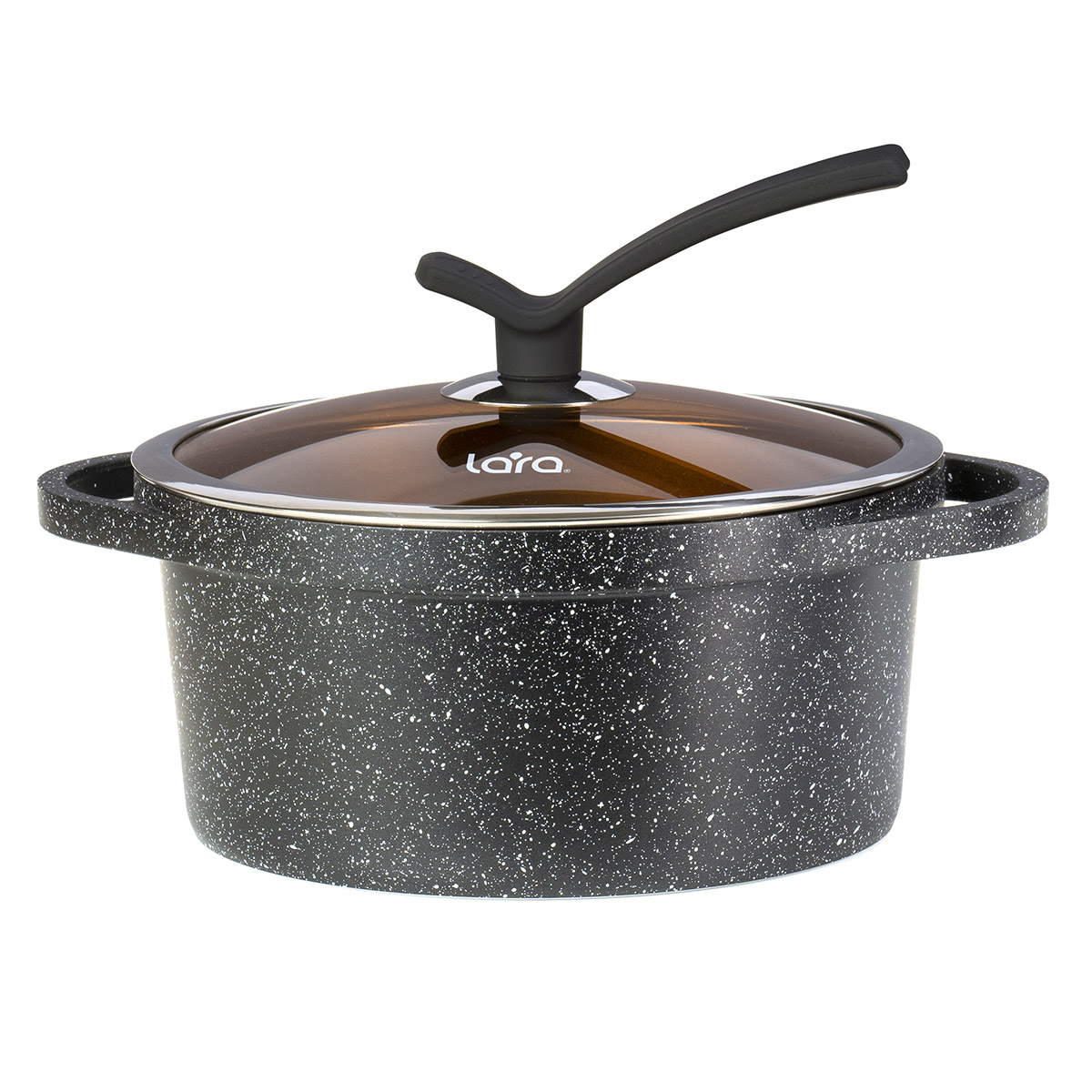 LR02-204 Кастрюля LARA серия Rio 24см, 4.2л, мрамор, капсулированное индукционное