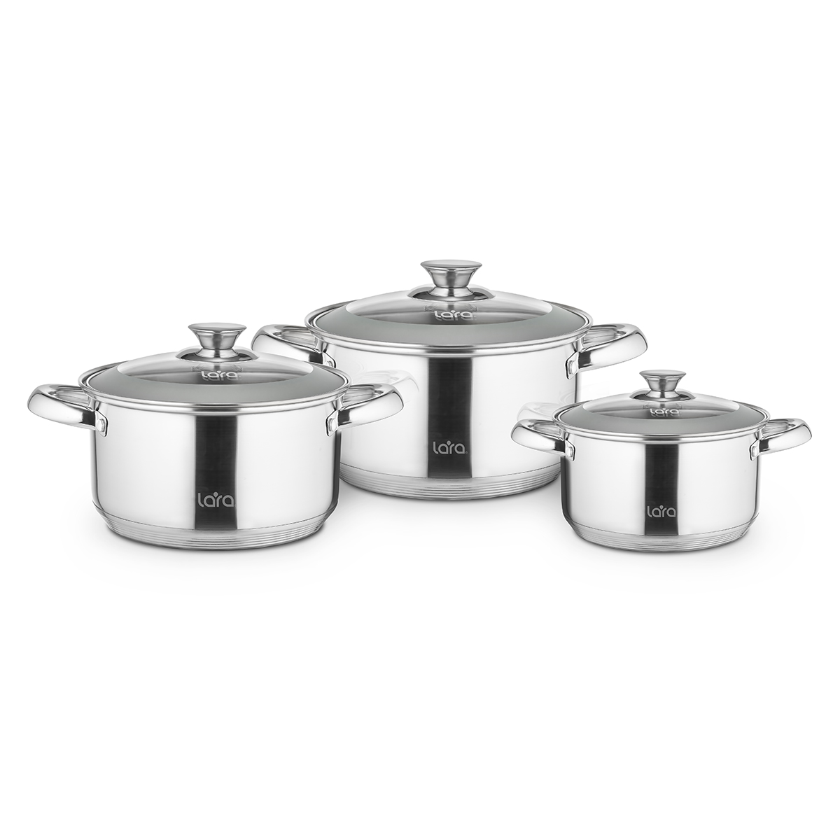 LR02-121 Набор посуды LARA серия MERCURY 16/18/22см (2.1+2.9+4.9л) индукционное капс.