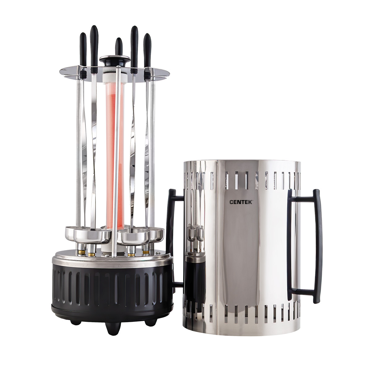 Электрошашлычница Centek CT-1460 1200Вт, Кварц нагр, Рецепты, 5 шамп (310мм),