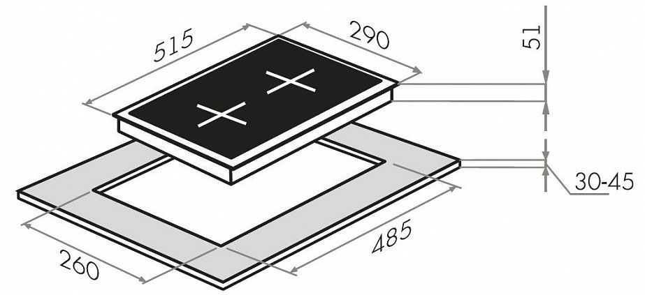 | Размеры для встраивания | 260x485 | |