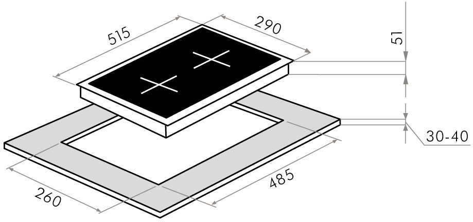 | Размеры для встраивания | 260x485x30мм | |