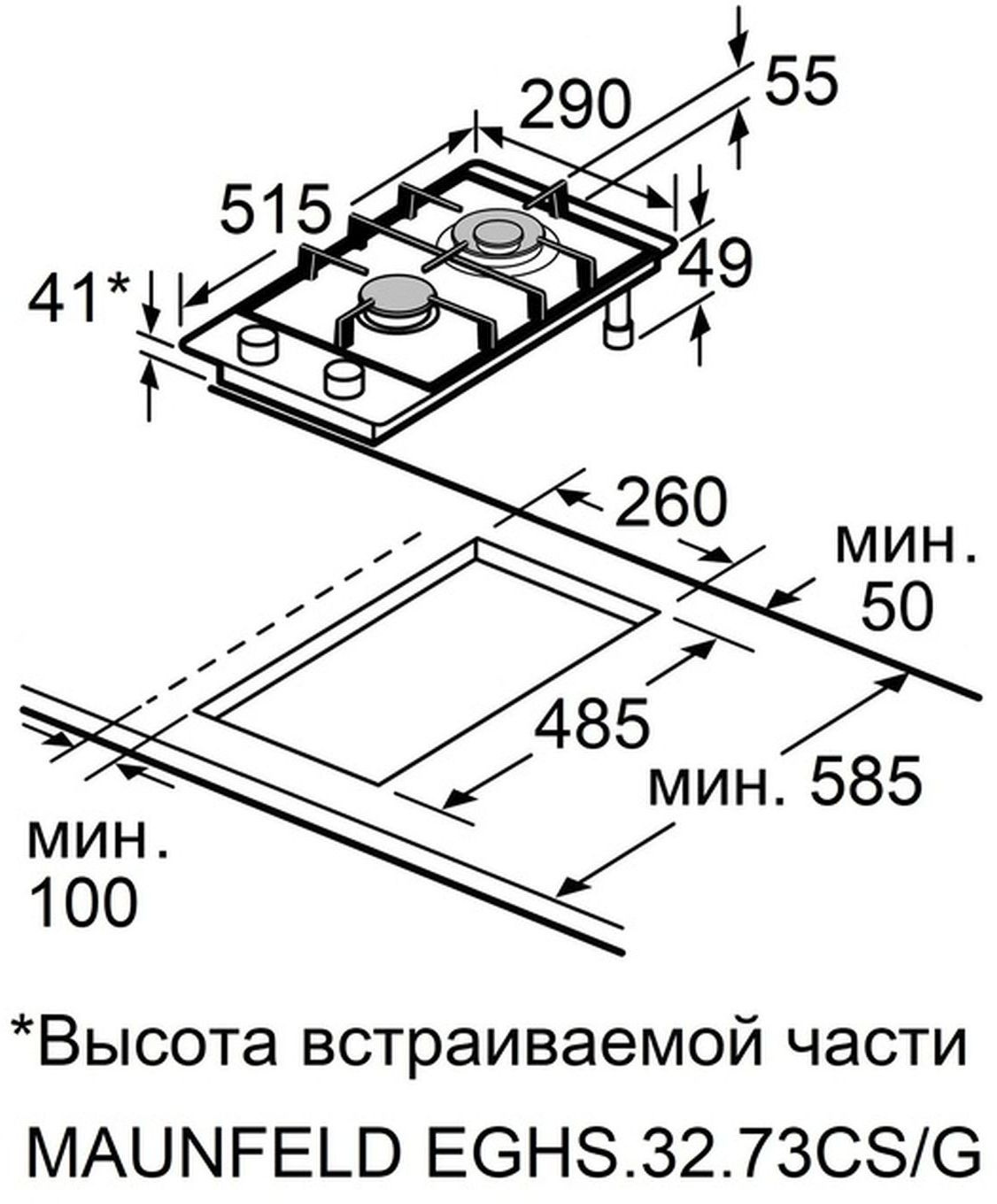 | Размеры для встраивания | 260x485x30мм | |