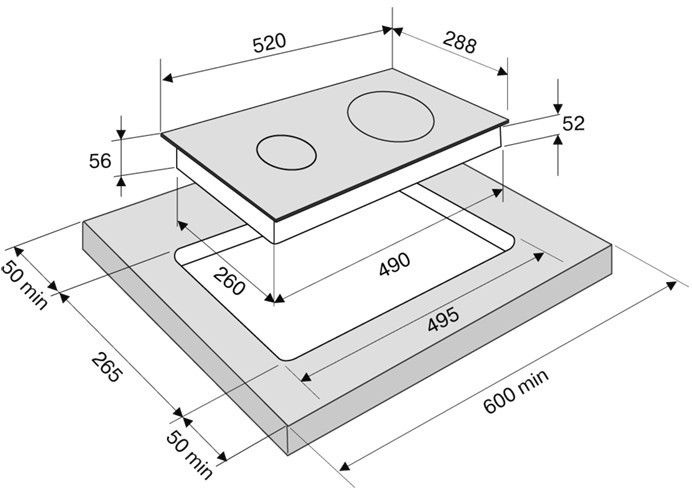 | Размеры для встраивания | 265x52x495мм | |