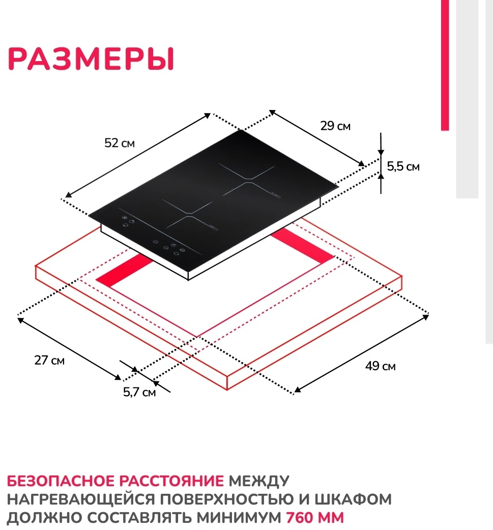 | Размеры для встраивания | 270x490мм | |