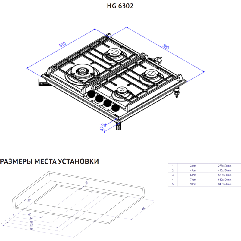 | Тип варочной поверхности | Газовая | |