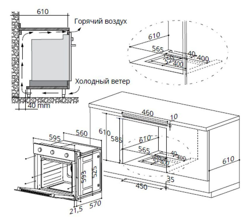 | Размеры для встраивания | 56.5x61x58.5см | |