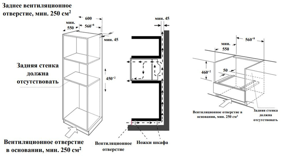 | Размеры для встраивания | 56x55x45см | |
