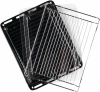 Благодаря своей текстуре, стеклянный противень проще отмывается, а продукты меньше пригорают в процессе приготовления. К тому же противень можно расположить на столе в качестве блюда для сервировки, не перекладывая приготовленную пищу в другие емкости.