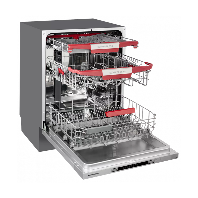 Посудомоечная машина имеет три корзины и корзину держатель бокалов. Одна из корзин разборная, что позволяет более гибко распределить пространство внутри посудомоечной машины исходя из требований вашего набора грязной посуды.