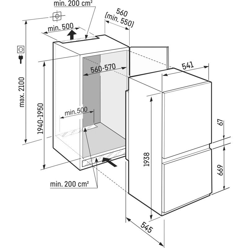 Встраиваемый холодильник Liebherr ICBNSd 5623-20 001 Plus устанавливается в нишу размерами 194-195 х 56-57 х 55 см. Это экономичная модель, энергопотребление которой соответствует классу А++ и составляет 239 кВт*ч в год.