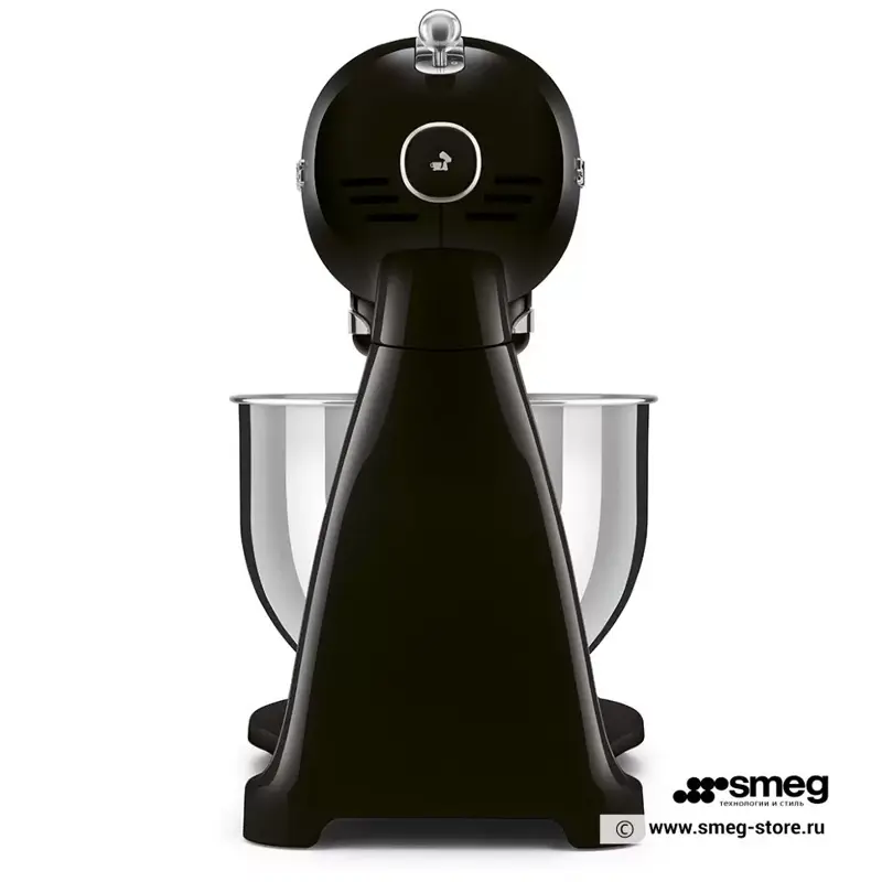 В верхней части корпуса Smeg SMF03BLEU расположен удобный рычаг для переключения десяти скоростей. Миксер поставляется с четырьмя насадками: 2 венчика, лопатка и крюки для теста. Высокая скорость и качество смешивания ингредиентов гарантирует планетарная система вращения.