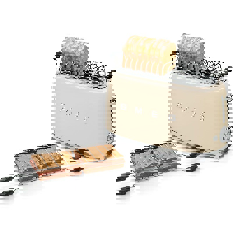 Благодаря большим и простым в использовании дискам управления Smeg TSF02 позволяет вам регулировать время и температуру поджаривания в соответствии с вашими предпочтениями, гарантируя, что ваш хлеб каждый раз будет идеально поджарен. В тостере также есть режим разморозки, позволяющий легко разморозить и поджарить замороженный хлеб, и режим рогалика, при котором одна сторона тоста нагревается, а другая поджаривается.