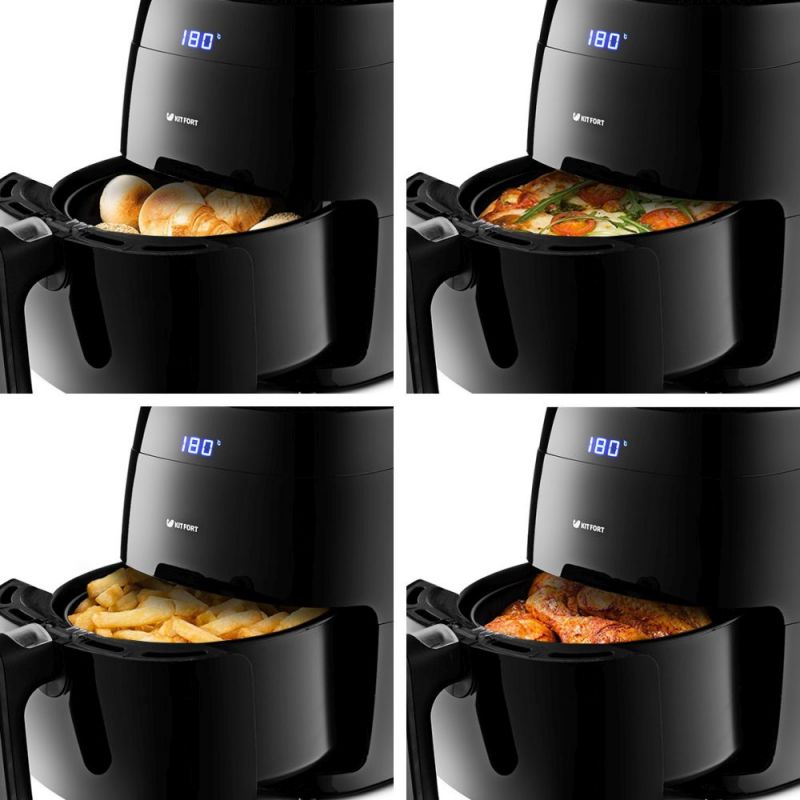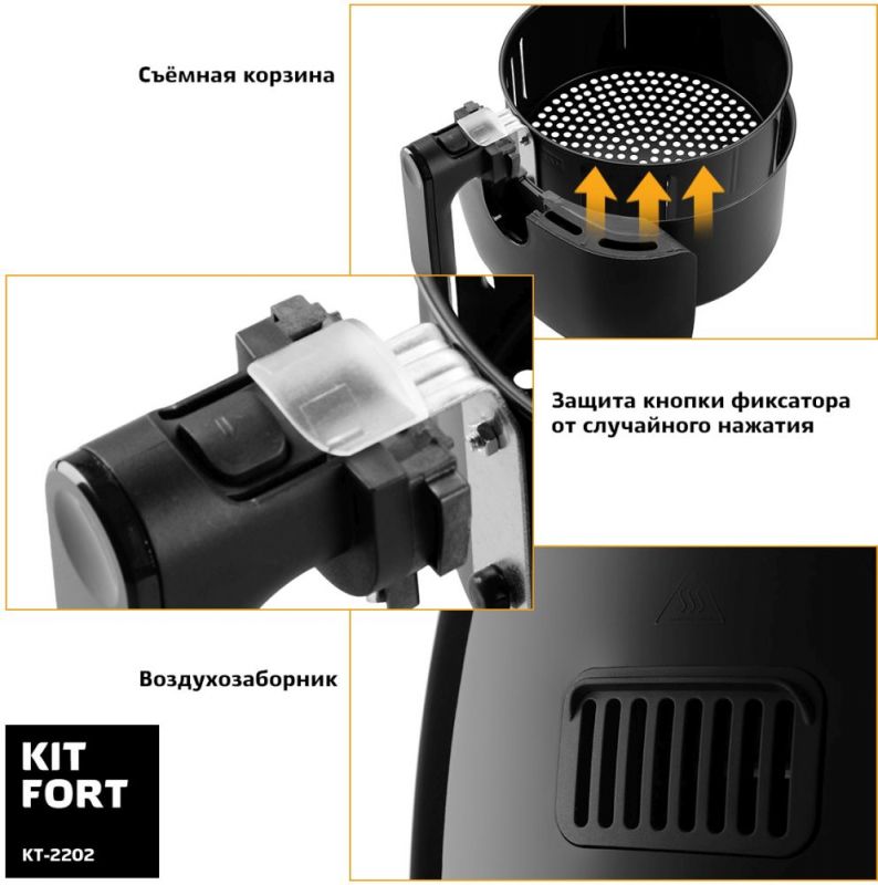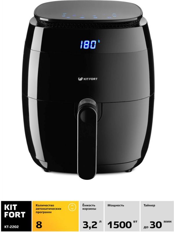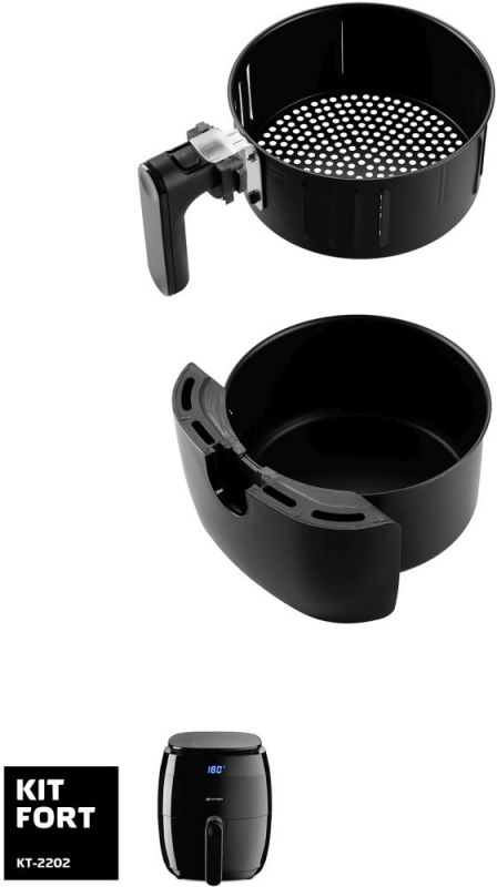Описание Современный аэрогриль Kitfort KT-2202 замечателен не только стильным дизайном. Он может использоваться как аэрогриль, а также как аэрофритюрница и духовка, и позволяет готовить большинство продуктов без добавления масла.
