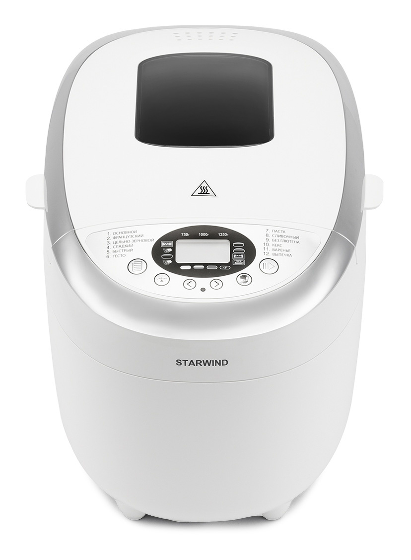 Программы выпечки Базовая, французский хлеб, хлеб из цельнозерновой муки, сладкий хлеб, супер быстрая, кефир, без глютена, пирожное, варенье, запекание.