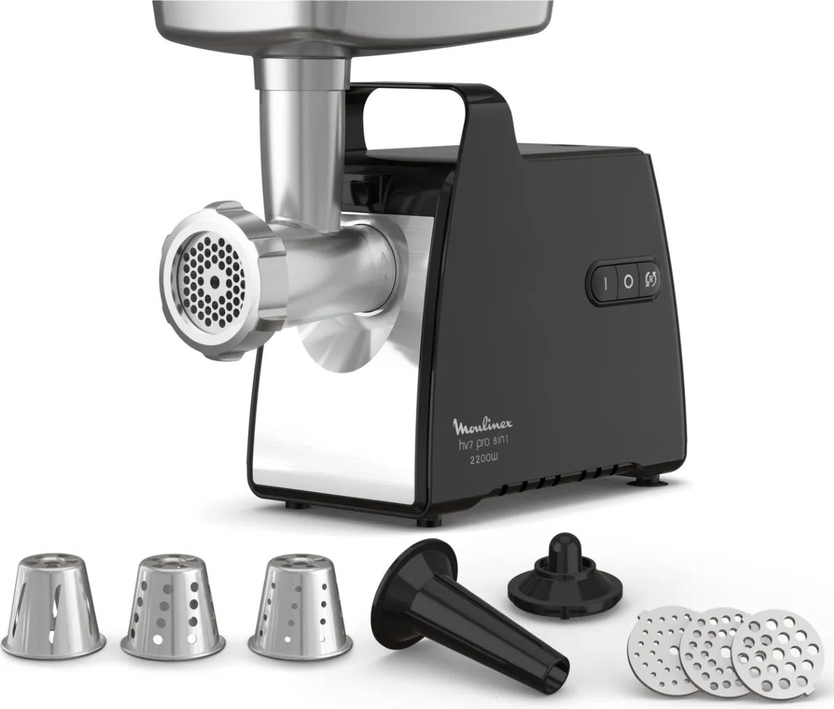 | Особенности | в комплект входят 3 насадки для нарезания и измельчения ингредиентов для салата и гарнира, 3 решетки из нержавеющей стали для фарша разного помола и 2 аксессуара для домашних кеббе и сосисок. | |