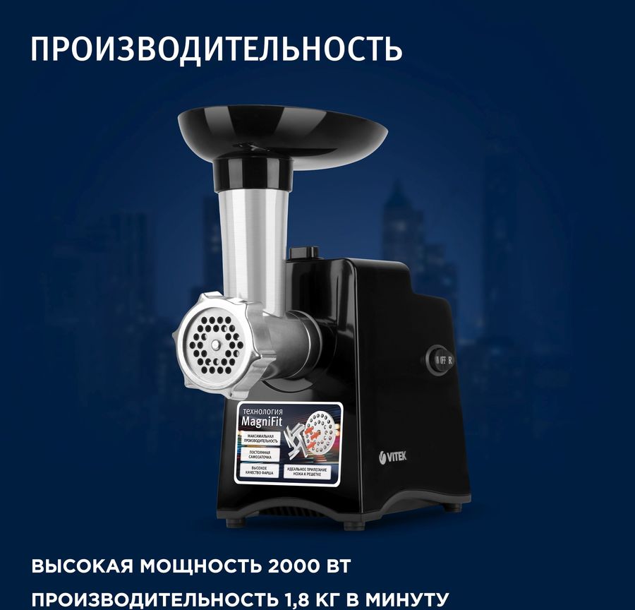 | Описание | Мясорубка Vitek VT-3644 способна за считанные минуты превратить в фарш большой объем мяса или измельчить другие продукты. Благодаря уникальной технологии заточки и шлифования MagniFit, ножи и диск прилегают друг к другу максимально плотно, в результате чего измельчается 100% продукта. | |