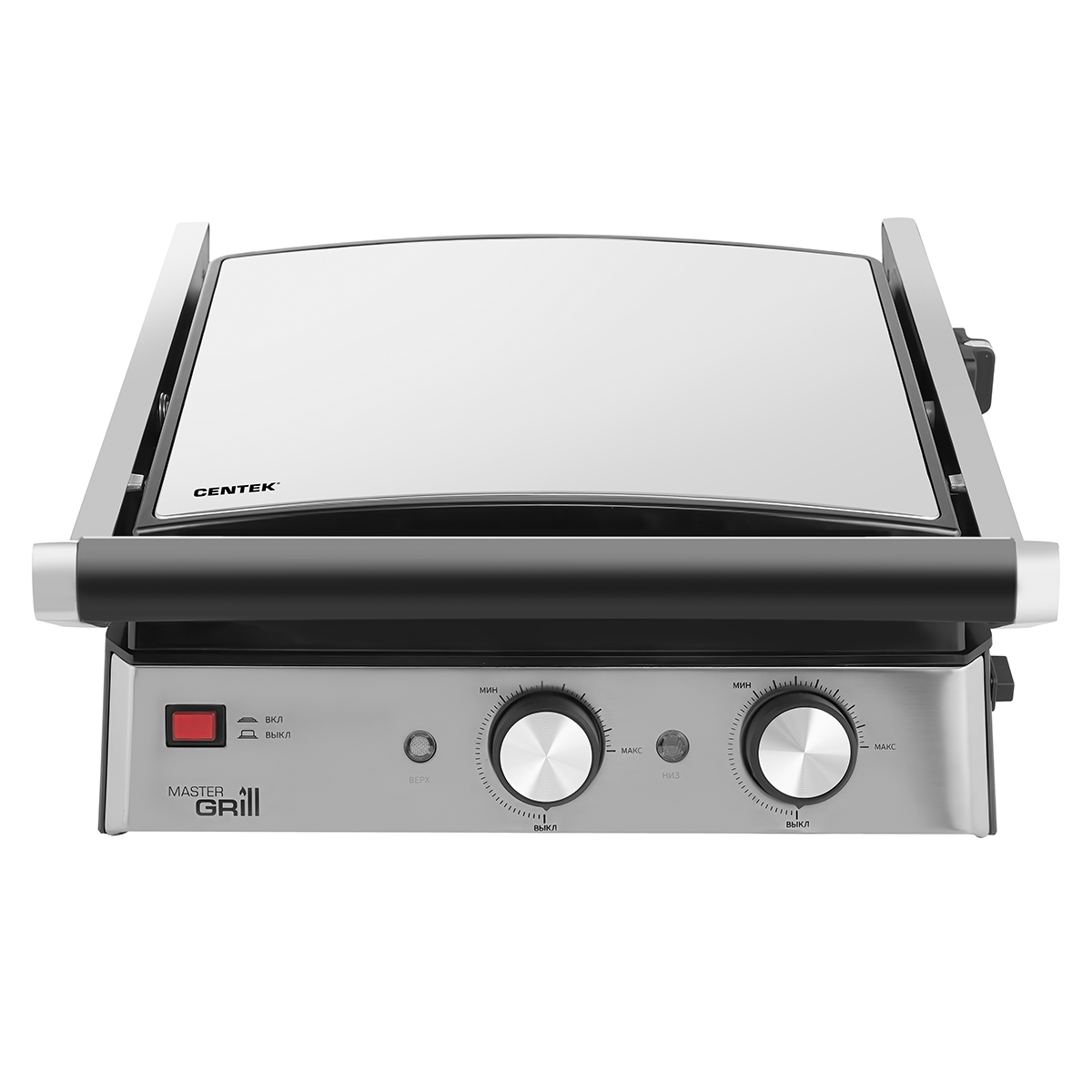 Контактный гриль Centek предназначен для жарки сочных мясных, овощных или рыбных блюд на гриле. Антипригарное покрытие рабочих панелей и поддон для сбора масла не дает продуктам пригореть и упрощает мытье после готовки. Нескользящие и устойчивые ножки.