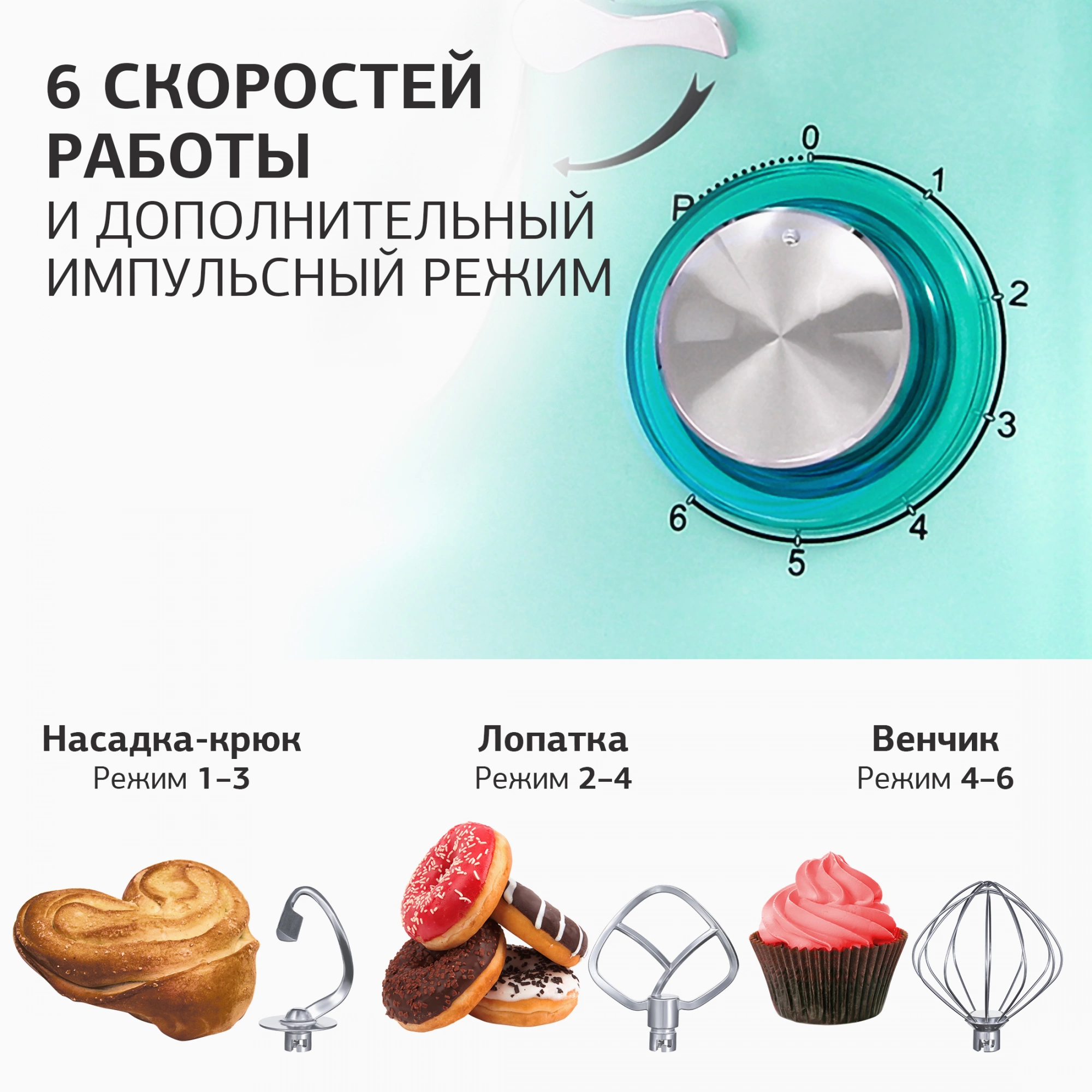 Описание Благодаря высокой мощности и шести режимам переключения скоростей процесс приготовления значительно ускорится. А возможность перемешивать и взбивать продукты без вашей помощи, позволит заниматься более важными делами или просто отдохнуть с чашечкой ароматного кофе.