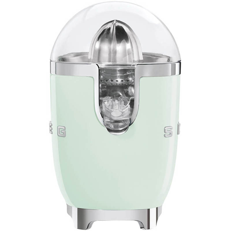 Соковыжималка для цитрусовых Smeg CJF11PGEU пастельного зеленого цвета отличается высокопрочным пластиковым корпусом и рабочей поверхностью из нержавеющей стали. Используемый материал не выделяет вредные вещества, не изменяет вкус и аромат продуктов. Модель с габаритами 28,1х18,9х22 см и весом 2,56 кг оснащена прорезиненными ножками для оптимальной устойчивости.