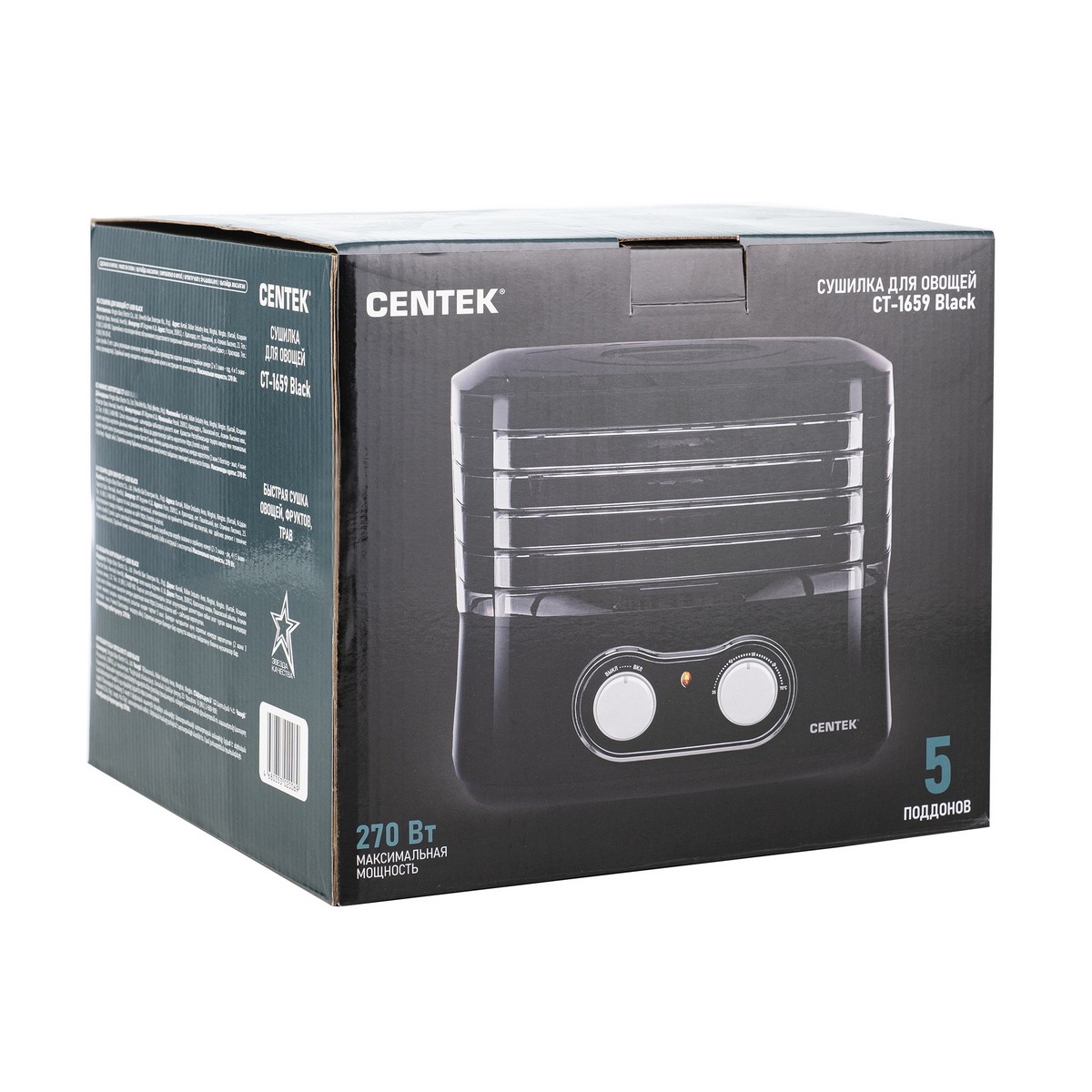 Сушилка для овощей Centek CT-1659, Черный, ОБЪЕМ 5 л, 270Вт, 5 поддонов, механическое управление