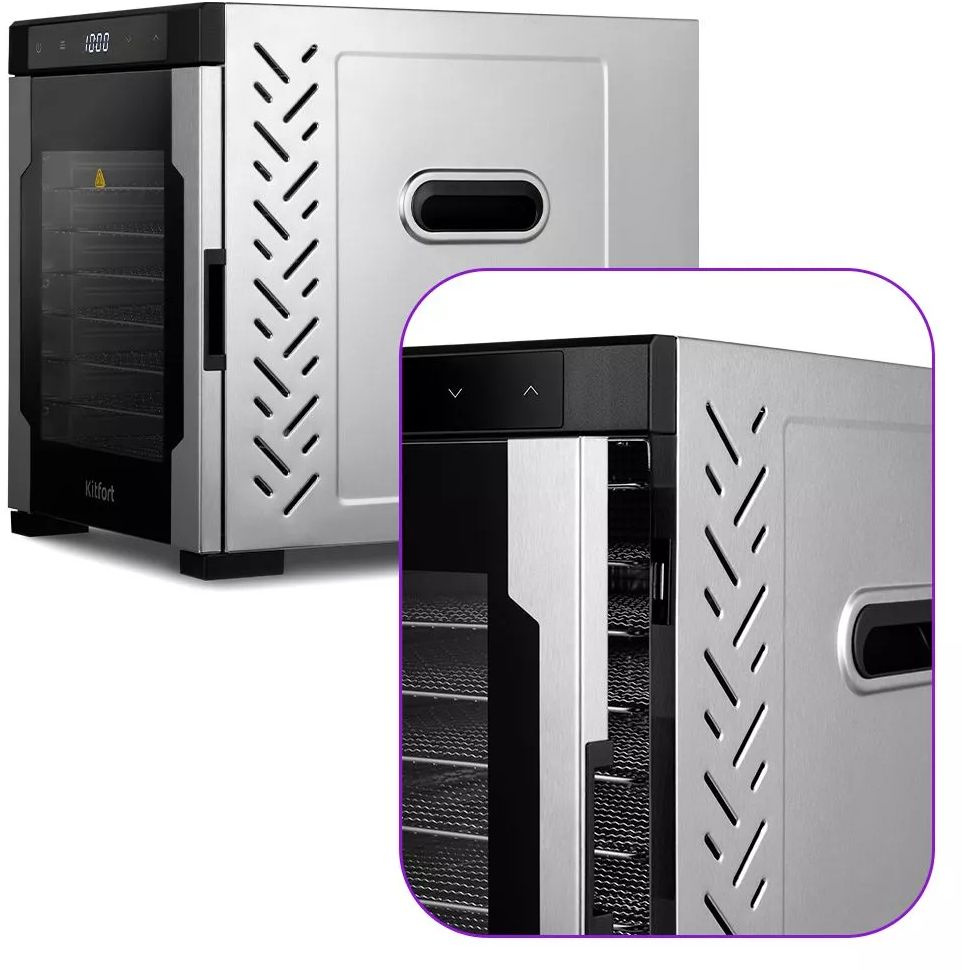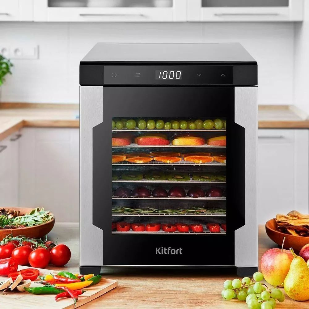 | Описание | Вместительная сушилка Kitfort КТ-1965 сохранит любимые фрукты и овощи полезными круглый год! Она насушит на всю зиму мясо, рыбу, помидоры, клубнику, персики, грибы, зелень, хлеб, а с помощью сплошных поддонов можно приготовить и пастилу. | |
