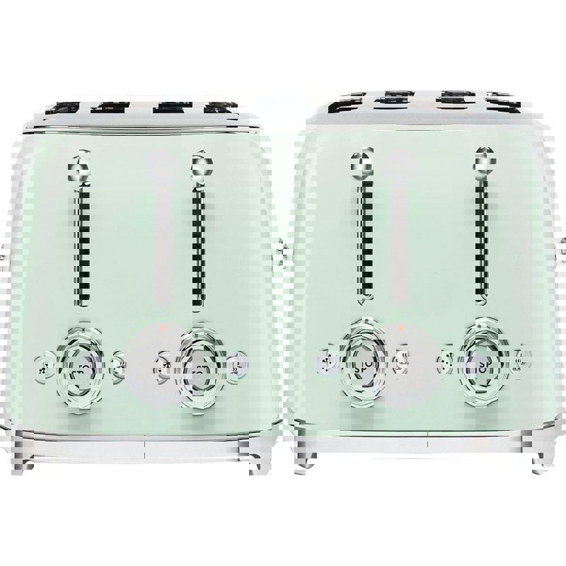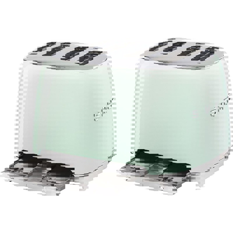Тостер Smeg в стиле 50-х годов предназначен для одновременного приготовления 4 ломтиков хлеба. Корпус изготовлен из нержавеющей стали.