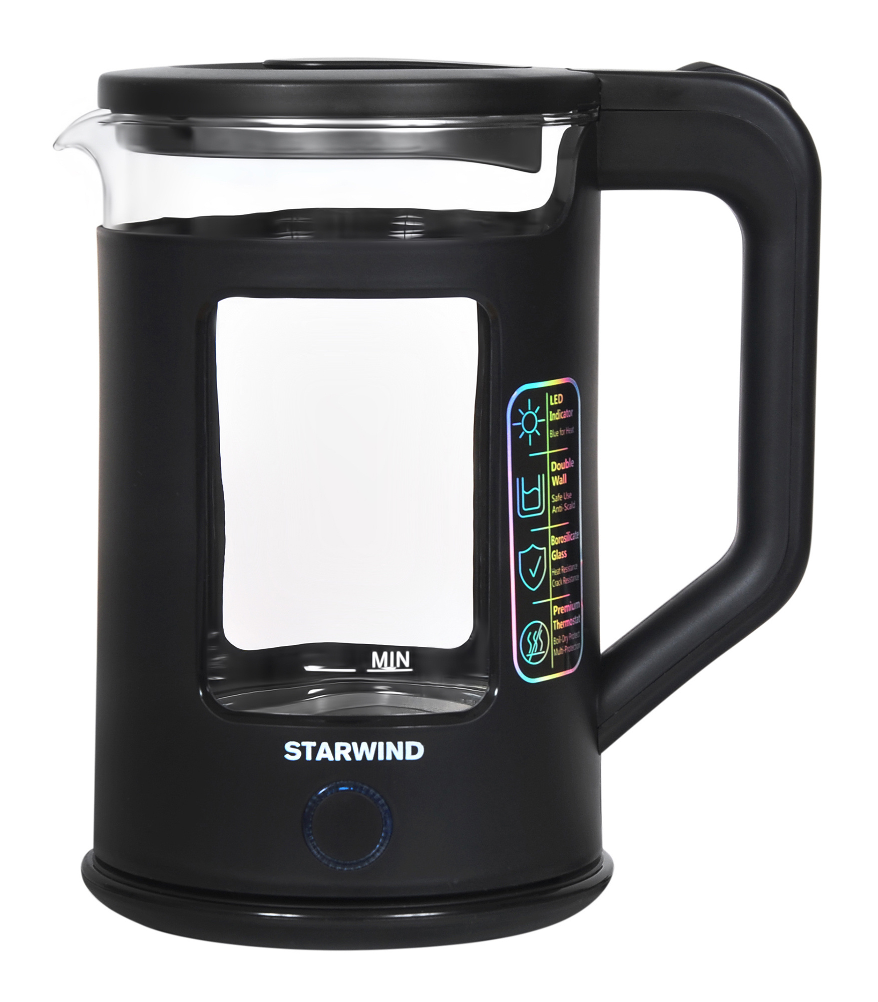 Чайник электрический Starwind SKG2061 1.5л. 1500Вт черный (корпус: стекло)