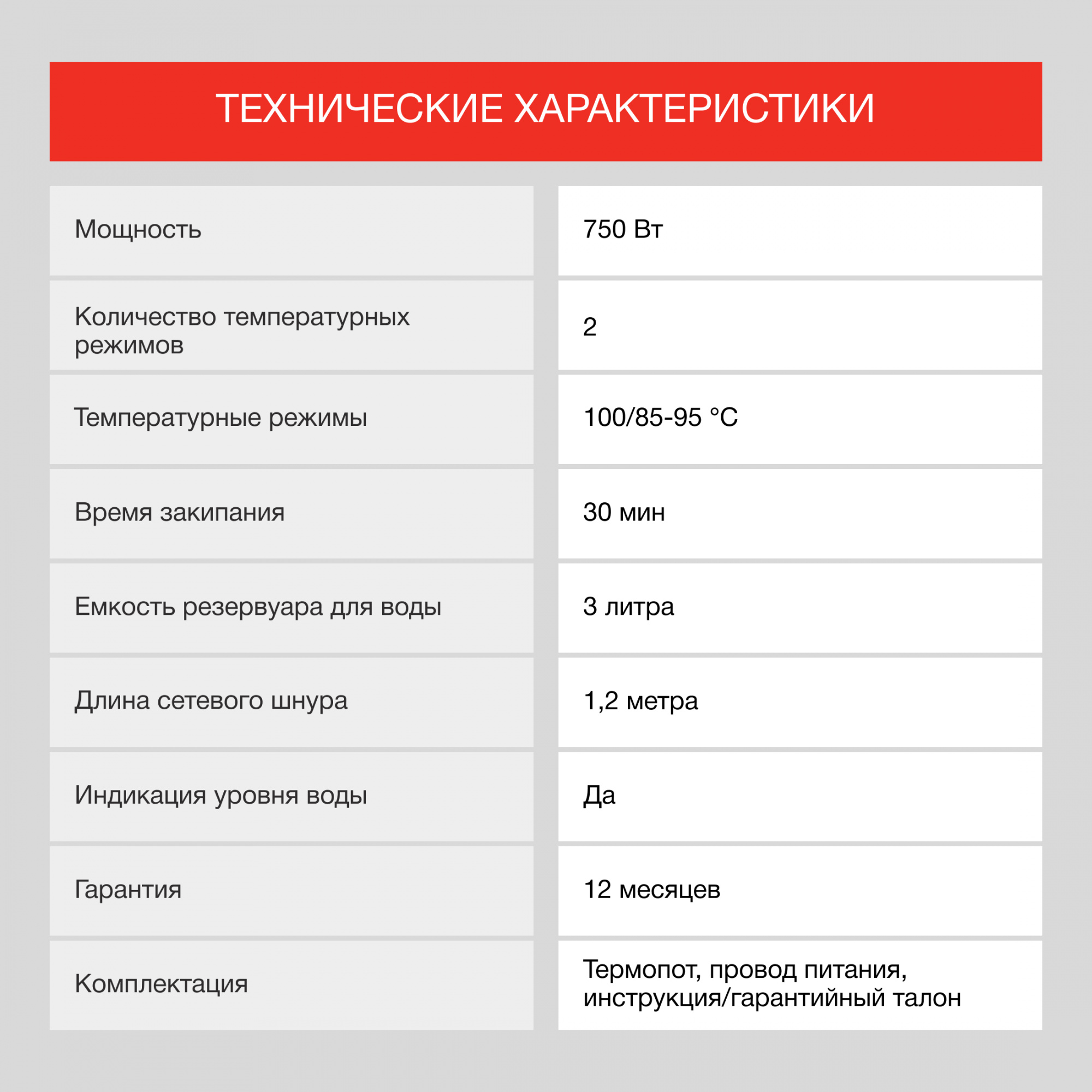 | Цвет термопота | белый | |