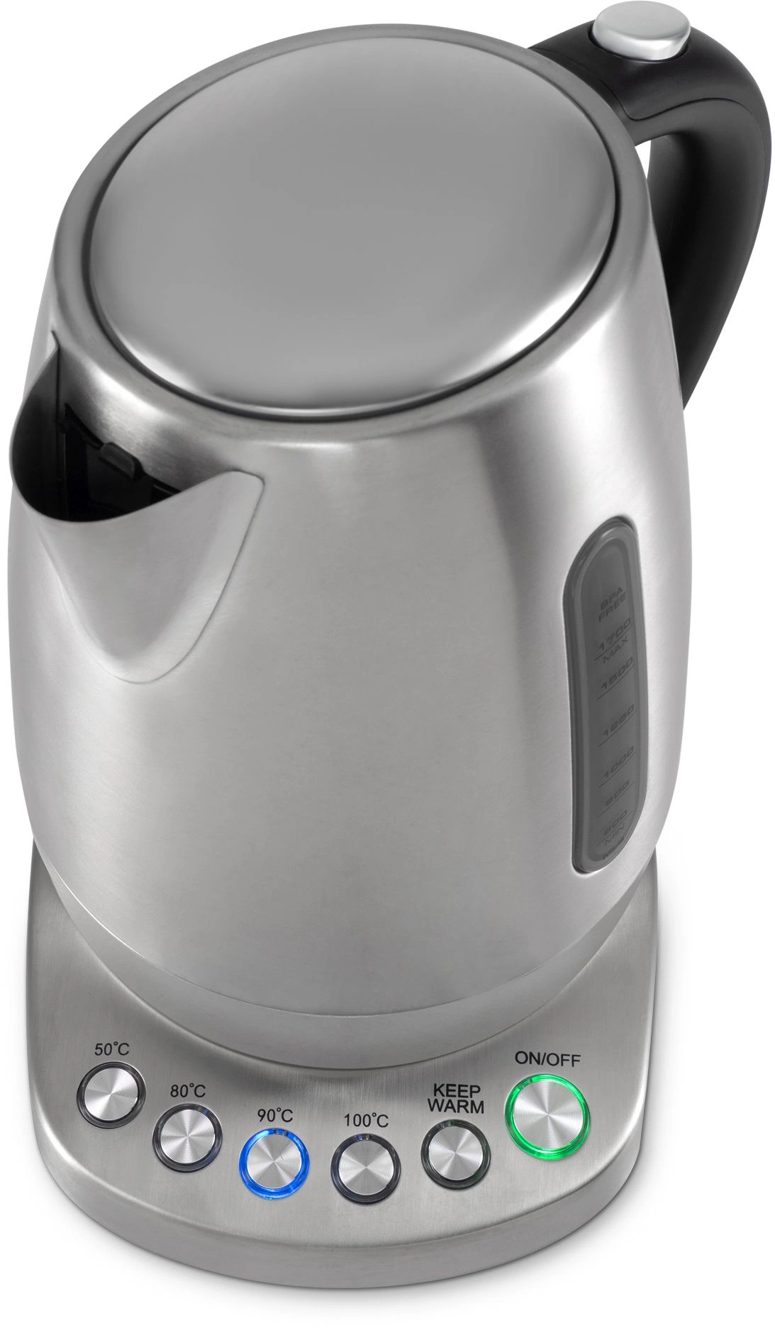 | Описание | Элегатный стальной чайник на базе с регулировкой температуры. | |