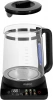 | Особенности | Основание с электронным управлением. У данной модели все элементы управления и индикация удобно расположены на основании чайника. Точная регулировка нагрева позволяет выставлять температуру с точностью до градуса. 6 авторежимов. | |