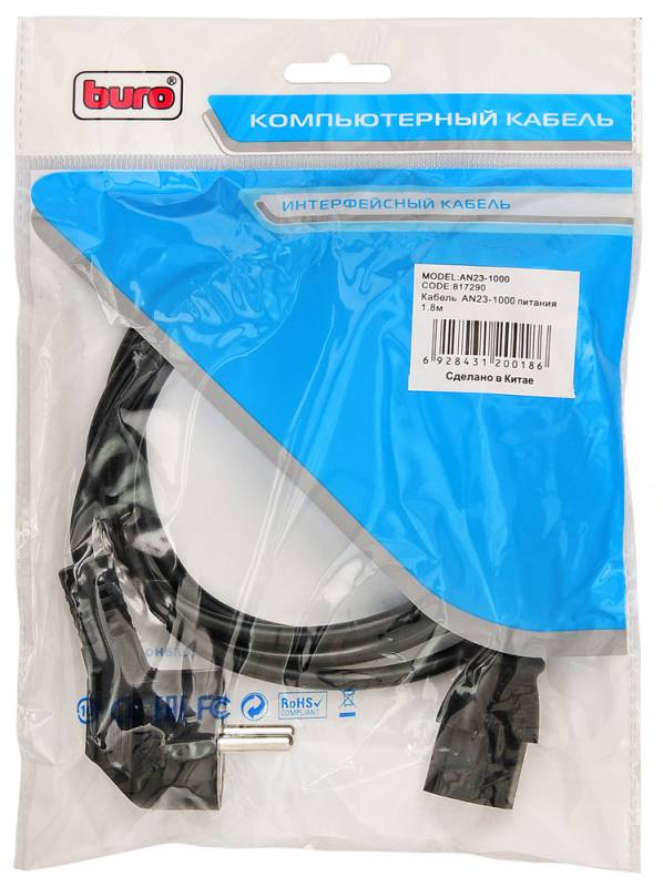 | Описание | Кабель для подключения блока питания ноутбука к электросети. Длина кабеля 1,8 метра. | |