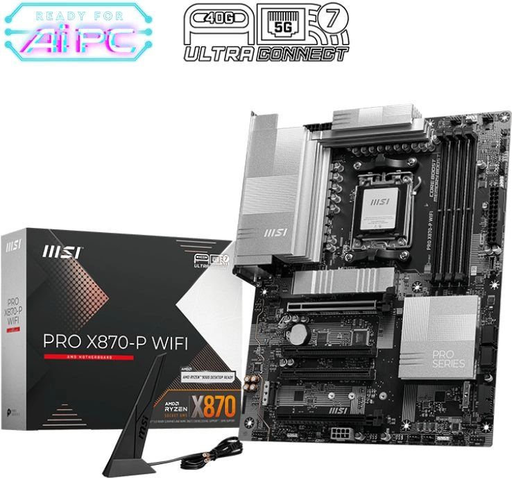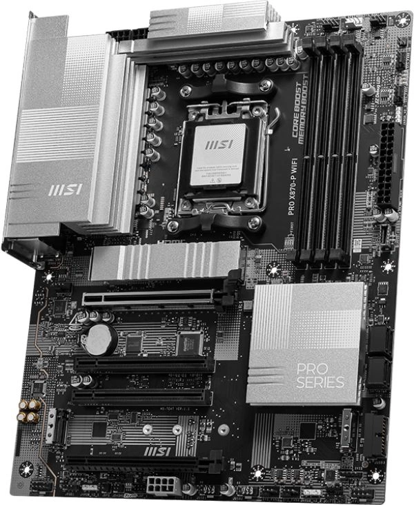 Материнская плата MSI PRO X870-P WIFI - это флагманская платформа для тех, кто ищет максимальную производительность, современные технологии и широкие возможности разгона в компьютере на базе процессоров AMD Ryzen. Она предназначена для использования с процессорами AMD Ryzen 7000 и 8000 серий и предлагает поддержку новейших технологий, включая память DDR5 с очень высокой частотой, интерфейс PCIe 5.0 и встроенный USB4.