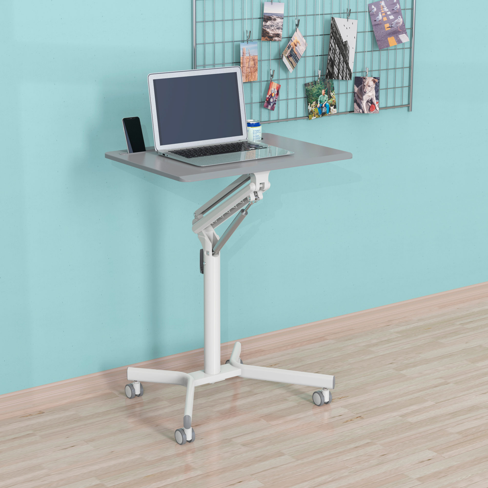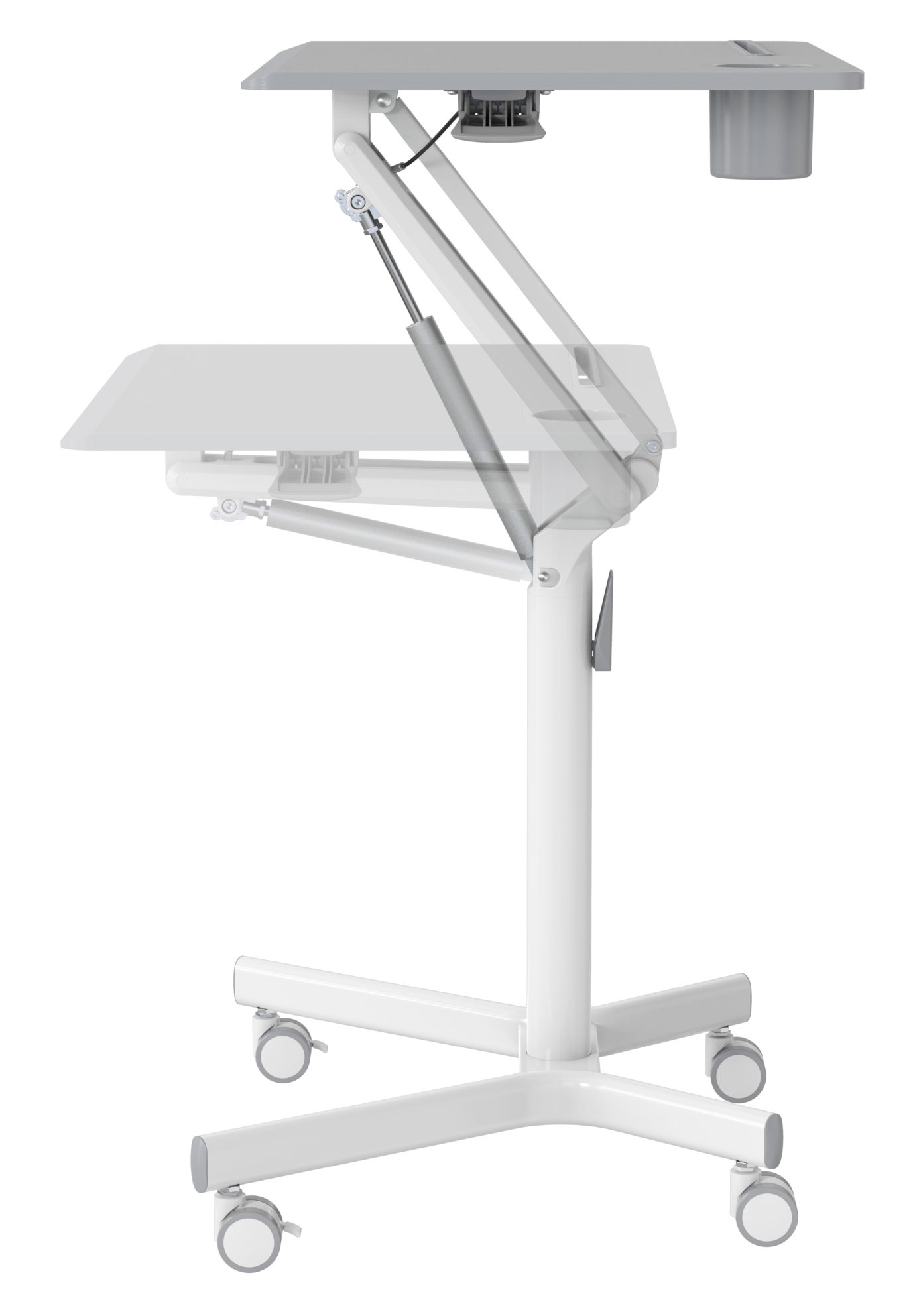 | Особенности | Подъемный механизм плавно опускает и поднимает столешницу, можно остановить в любом положении. Управление при помощи одного рычага. Наличие 4 колес обеспечивает маневренность, 2 колеса со стопором, для придания устойчивости. | |
