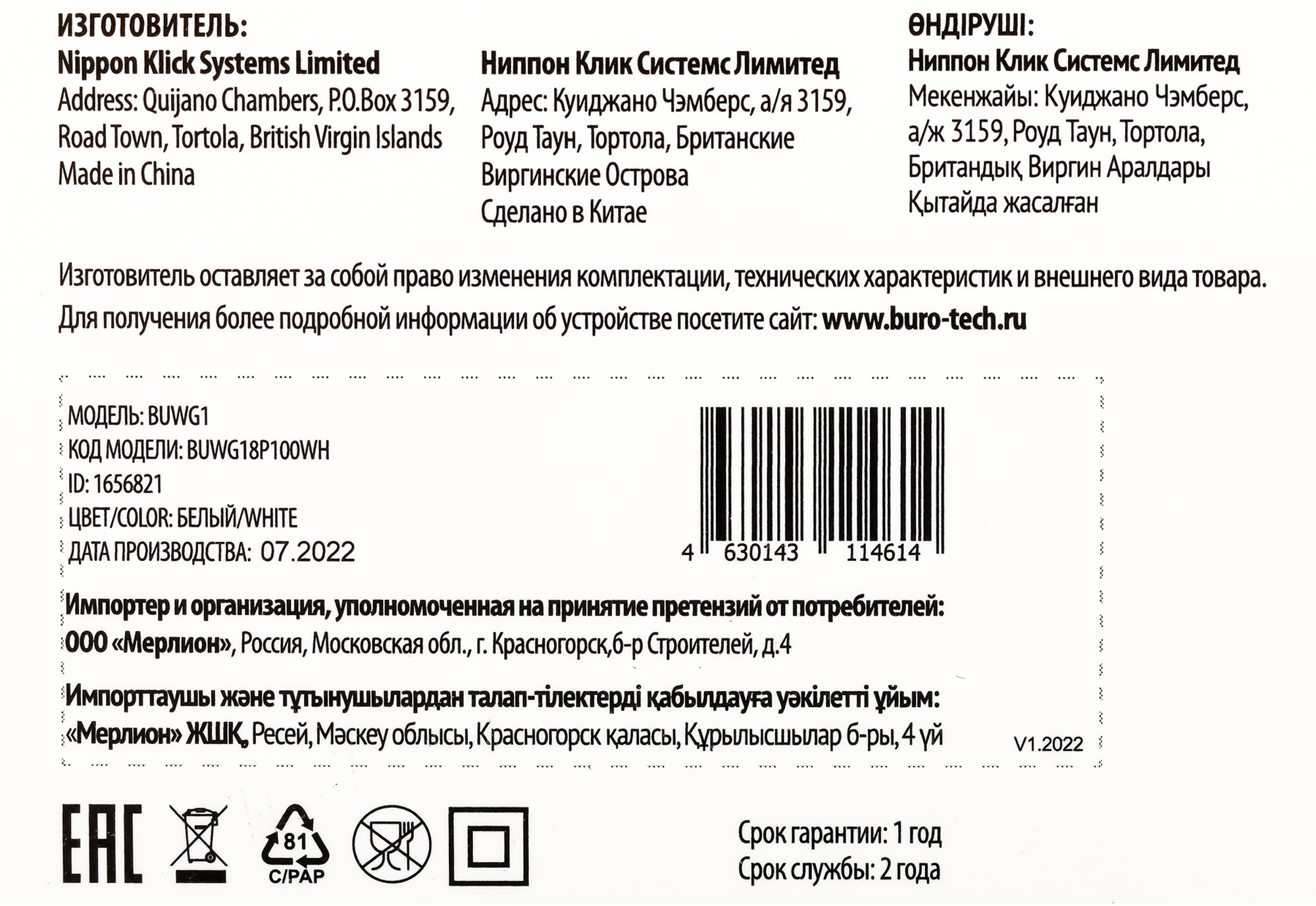 | PartNumber/Артикул Производителя | BUWG18P100WH | |