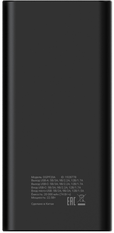 | Емкость батареи | 20000 | |