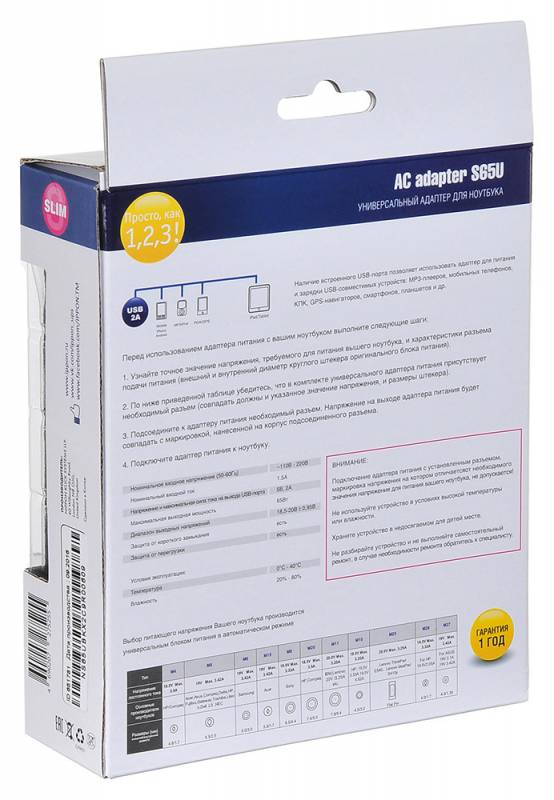 | Описание | Универсальный сетевой адаптер для ноутбуков основных производителей со встроенным USB-портом, через который Вы сможете подзаряжать смартфон, планшет, навигатор или MP3-плеер. Автоматический выбор выходного напряжения, с помощью подключения необходимого переходника. Защита от перегрузки и перегрева. | |