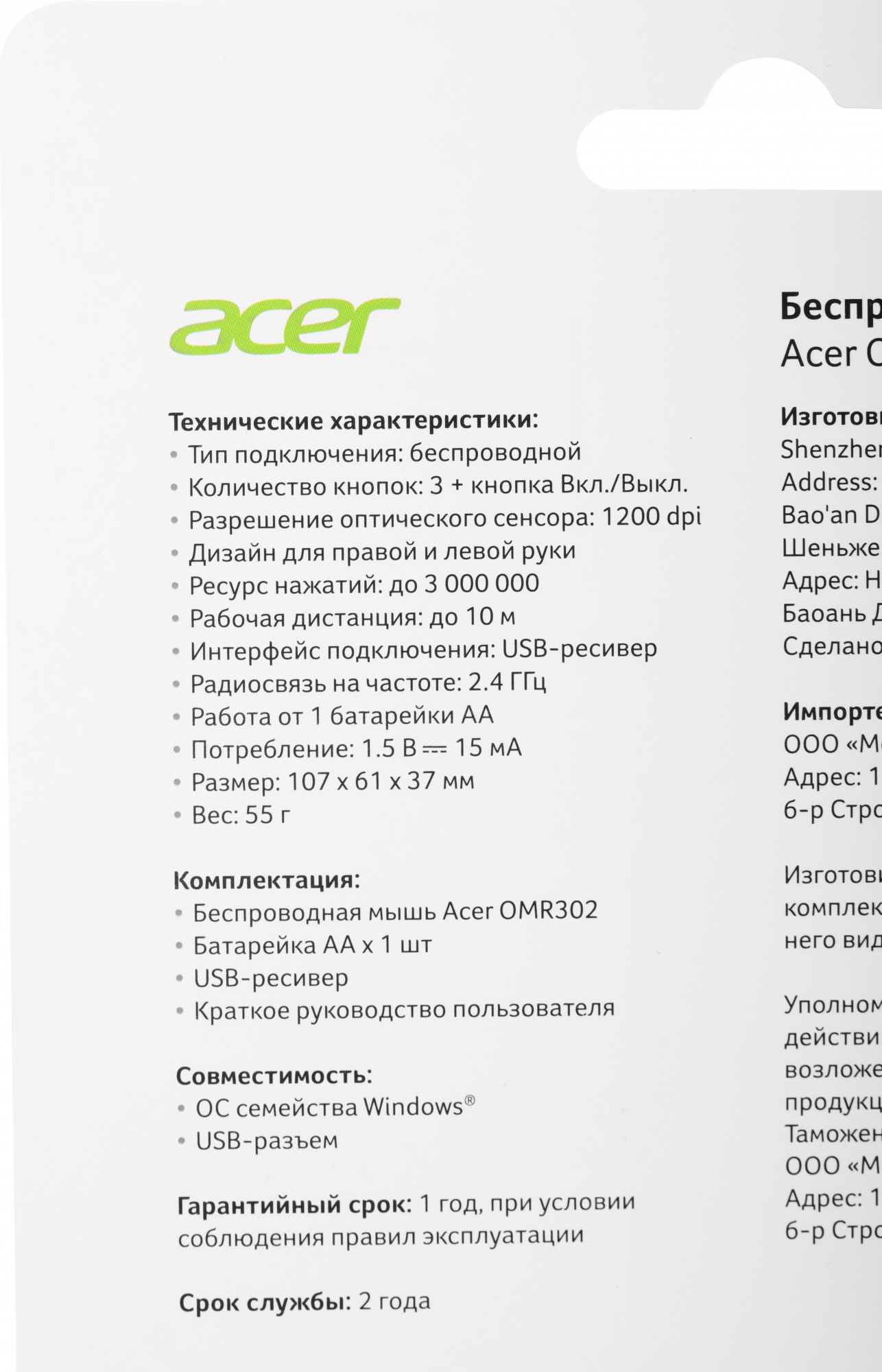 | Бренд | ACER | |