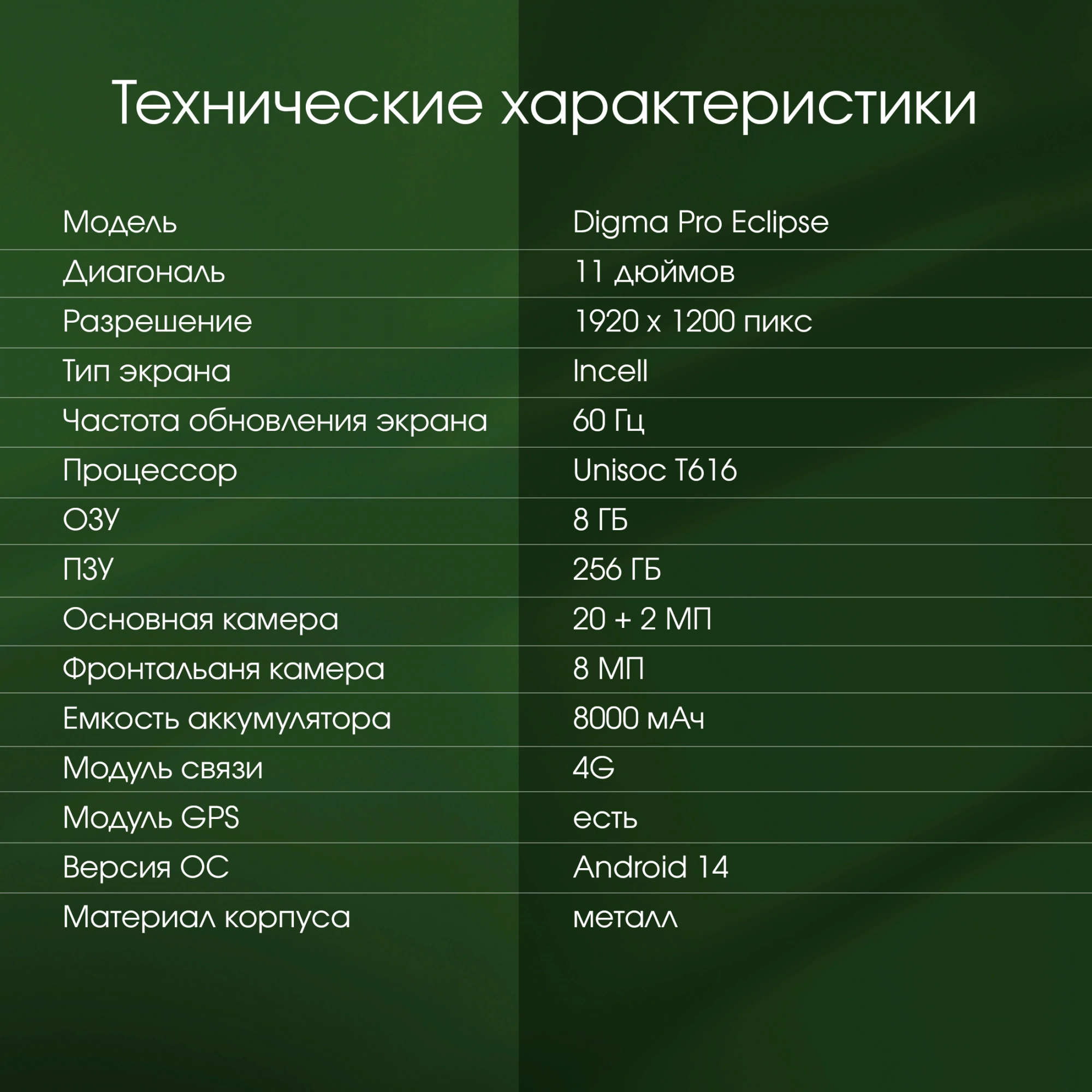 | Диагональ экрана | 11 | |