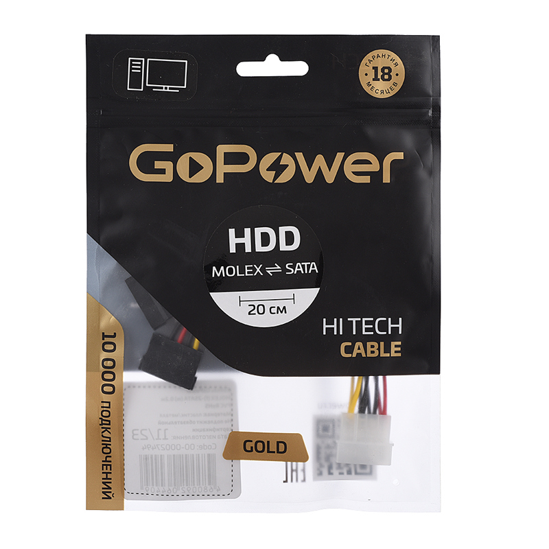 Кабель питания разветвитель MOLEX-2SATA предназначен для обеспечения питания жестких дисков (HDD и SSD), оптических приводов с разъемом SATA.