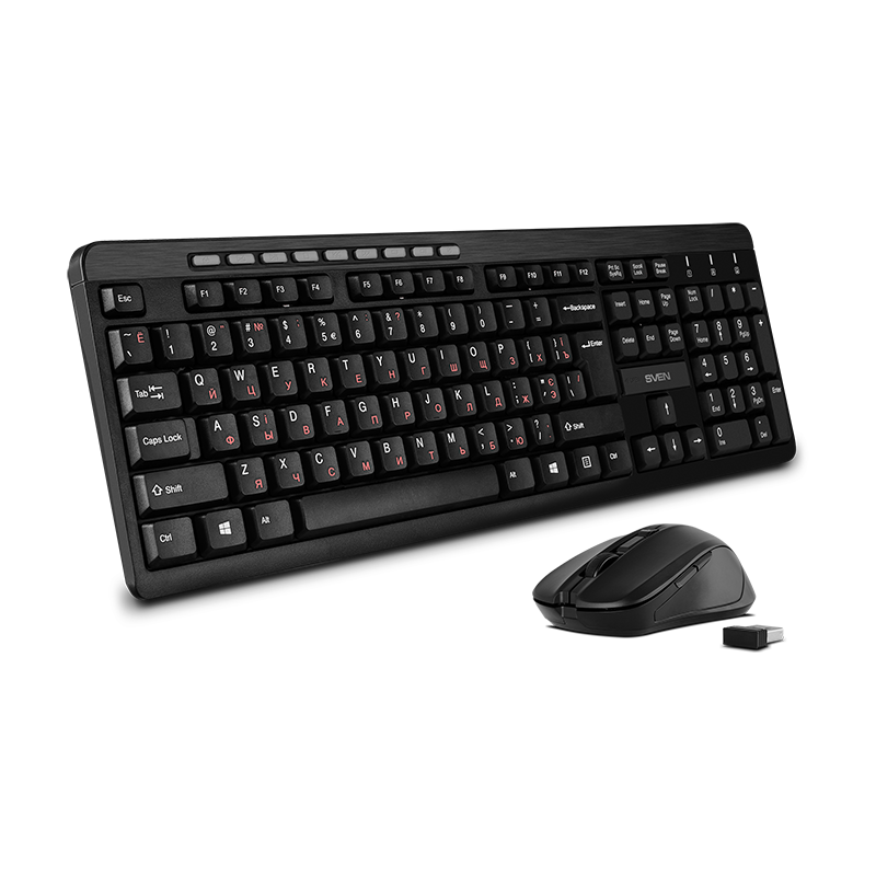 Компания SVEN представила набор из клавиатуры и компьютерной мыши, позволяющий получить два компактных и надежных устройства, способных стать отличным дополнением любого рабочего места. Беспроводной ресивер у комплекта общий и займет всего один порт USB. Размеры приемника крайне невелики — если вы решите использовать KB-C3400W вместе с ноутбуком, его не придется вынимать при переноске.