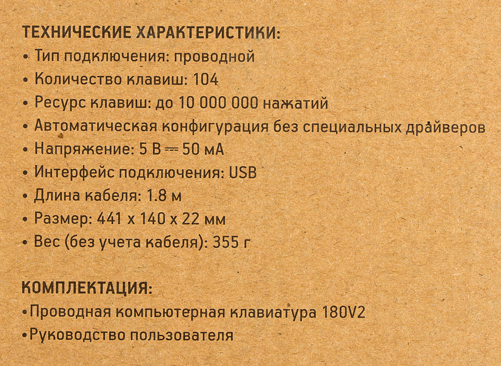 | Особенности | Универсальная офисная клавиатура с длинным кабелем 1,8 м | |