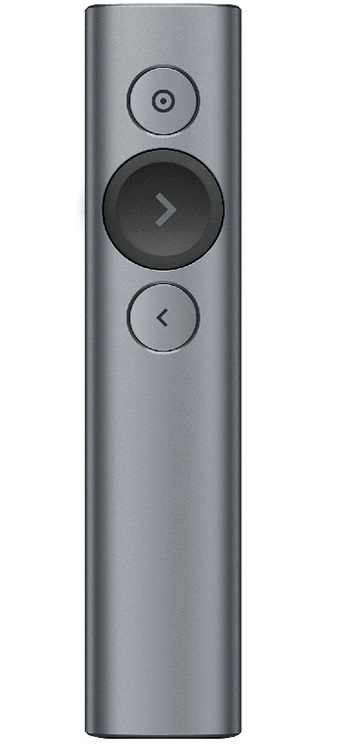 | Кнопки презентера | Самая большая кнопка перелистывает слайды презентации, кнопка ниже позволяет вернуться на слайд обратно. Верхняя кнопка зарезервирована для функции Spotlight. | |