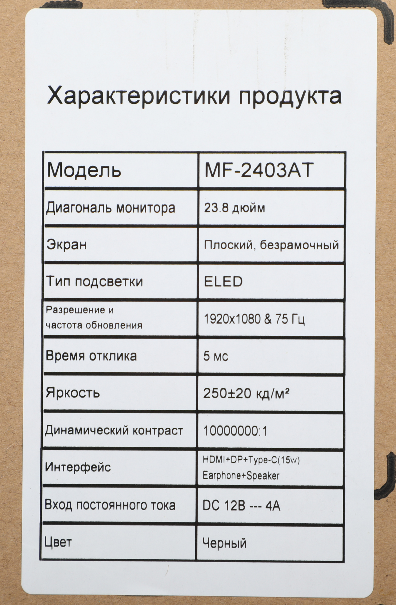 | Диагональ экрана | 23.8" (60.45см) | |