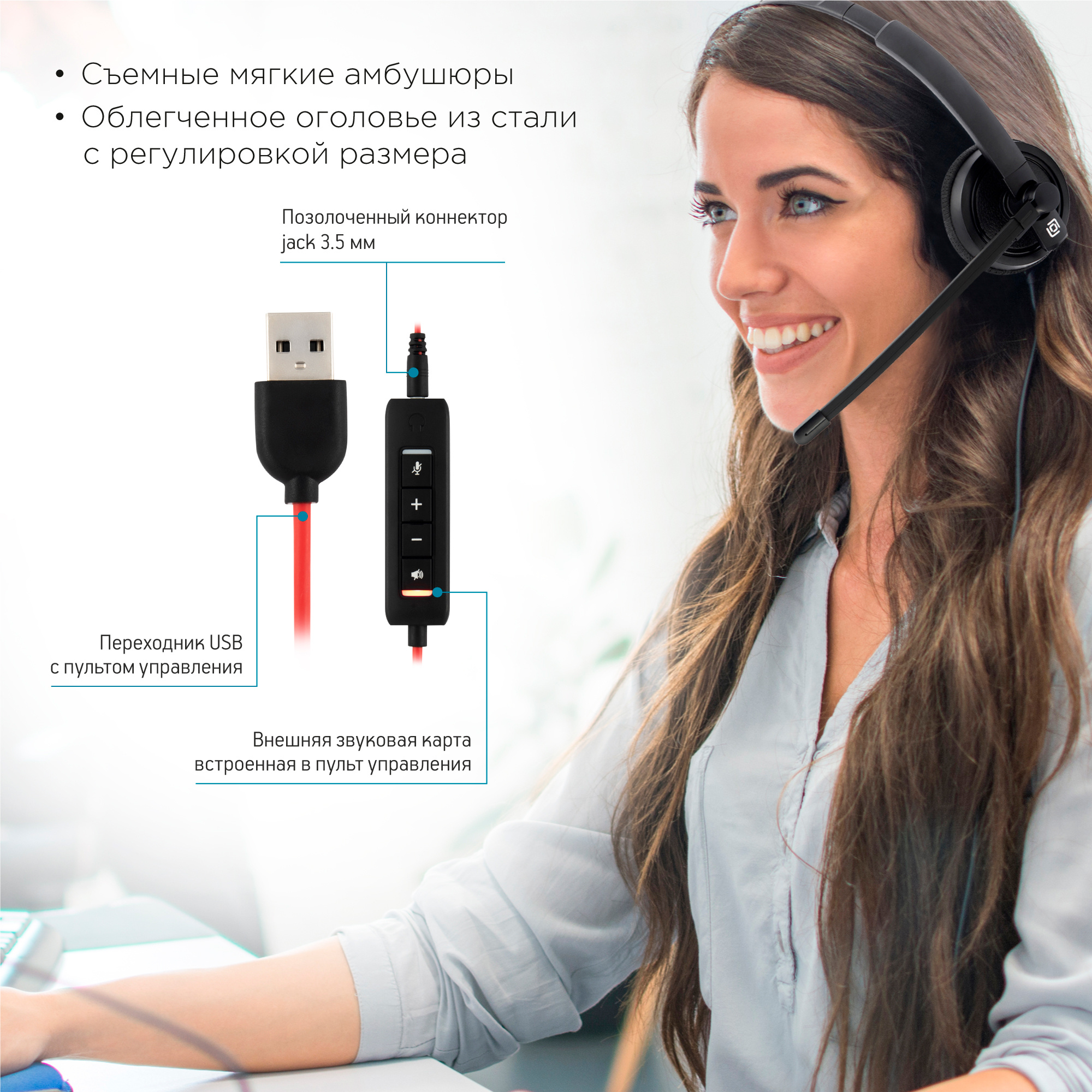 | Особенности | Широкий угол вращения микрофона - подойдет и правшам и левшам, универсальное подключение - в комплекте адаптер USB / 3,5 мм, удобная легкая универсальная гарнитура | |