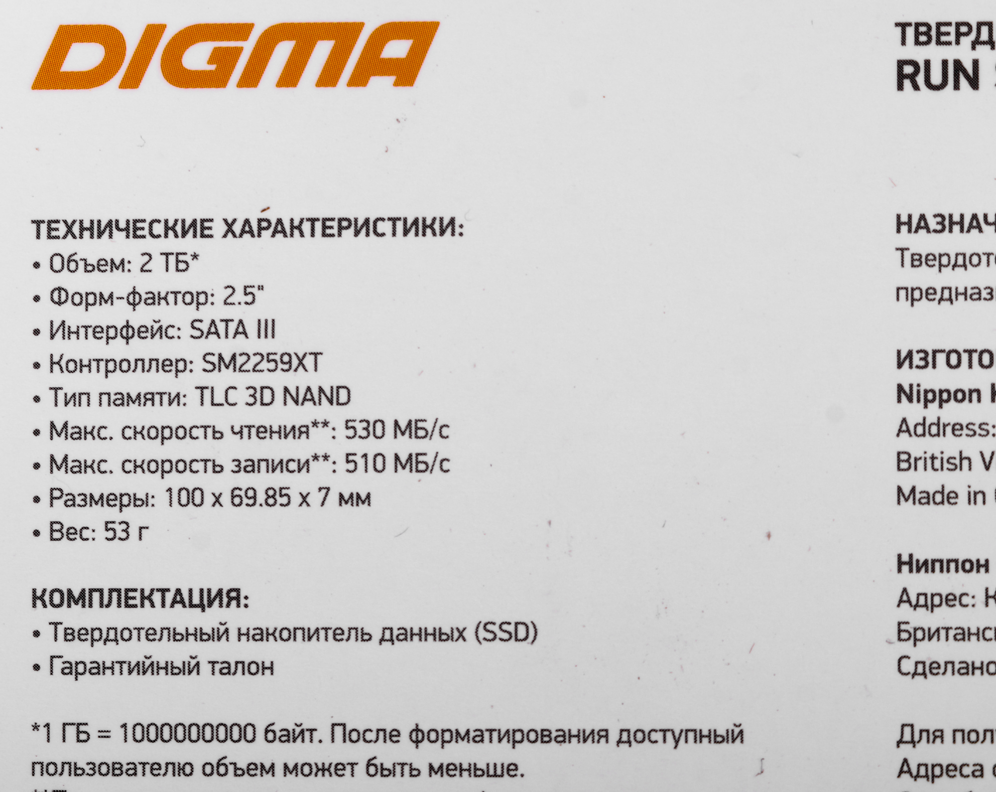 | Ресурс TBW | 960 | |