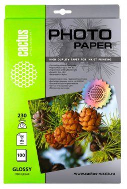 Фотобумага Cactus CS-GA6230100 10x15/230г/м2/100л./белый глянцевое для струйной печати