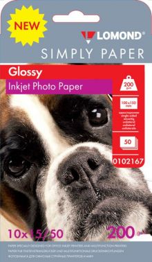 Бумага Lomond Simply 0102167 10x15/200г/м2/50л./белый CIE148% глянцевое для струйной печати